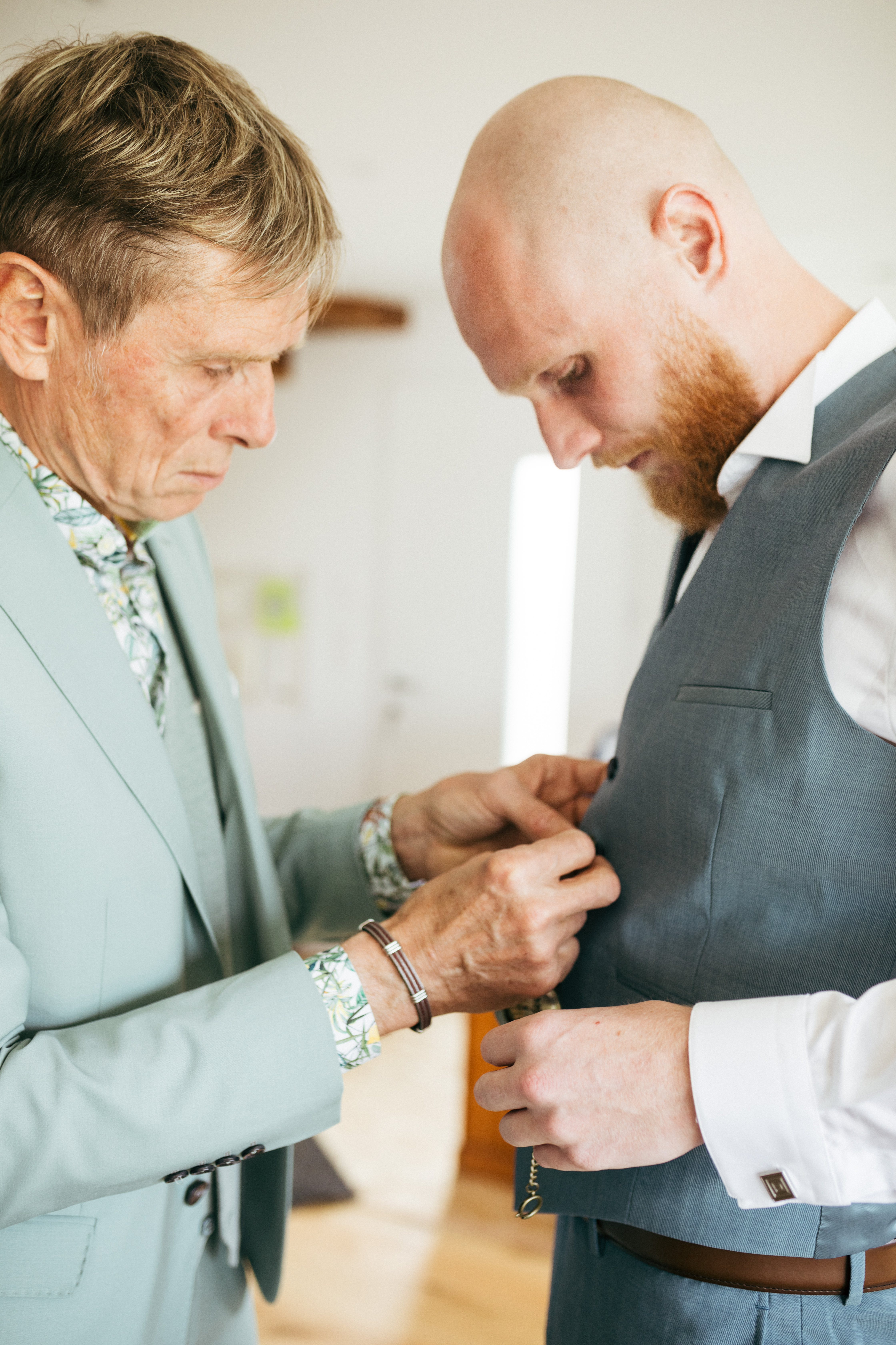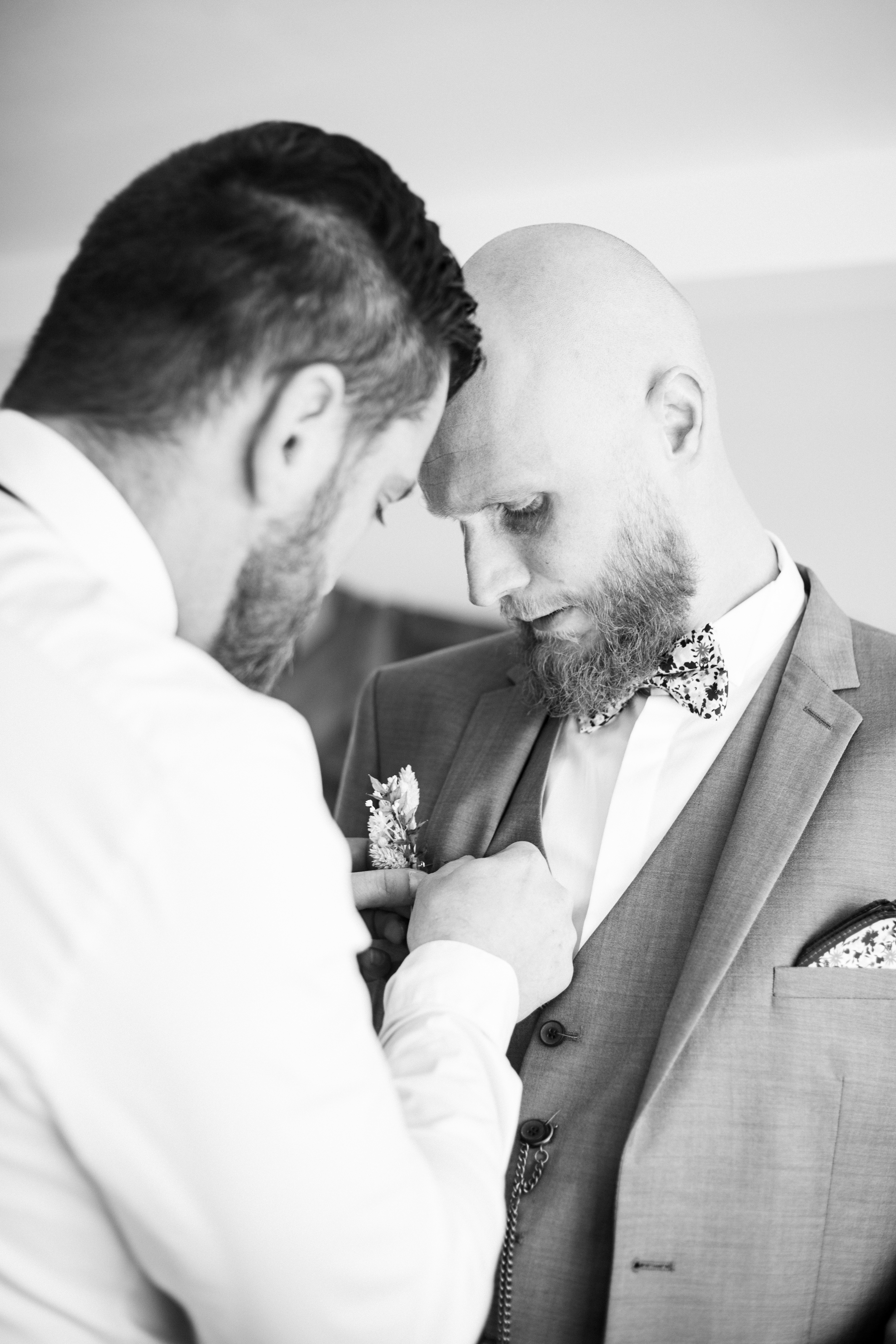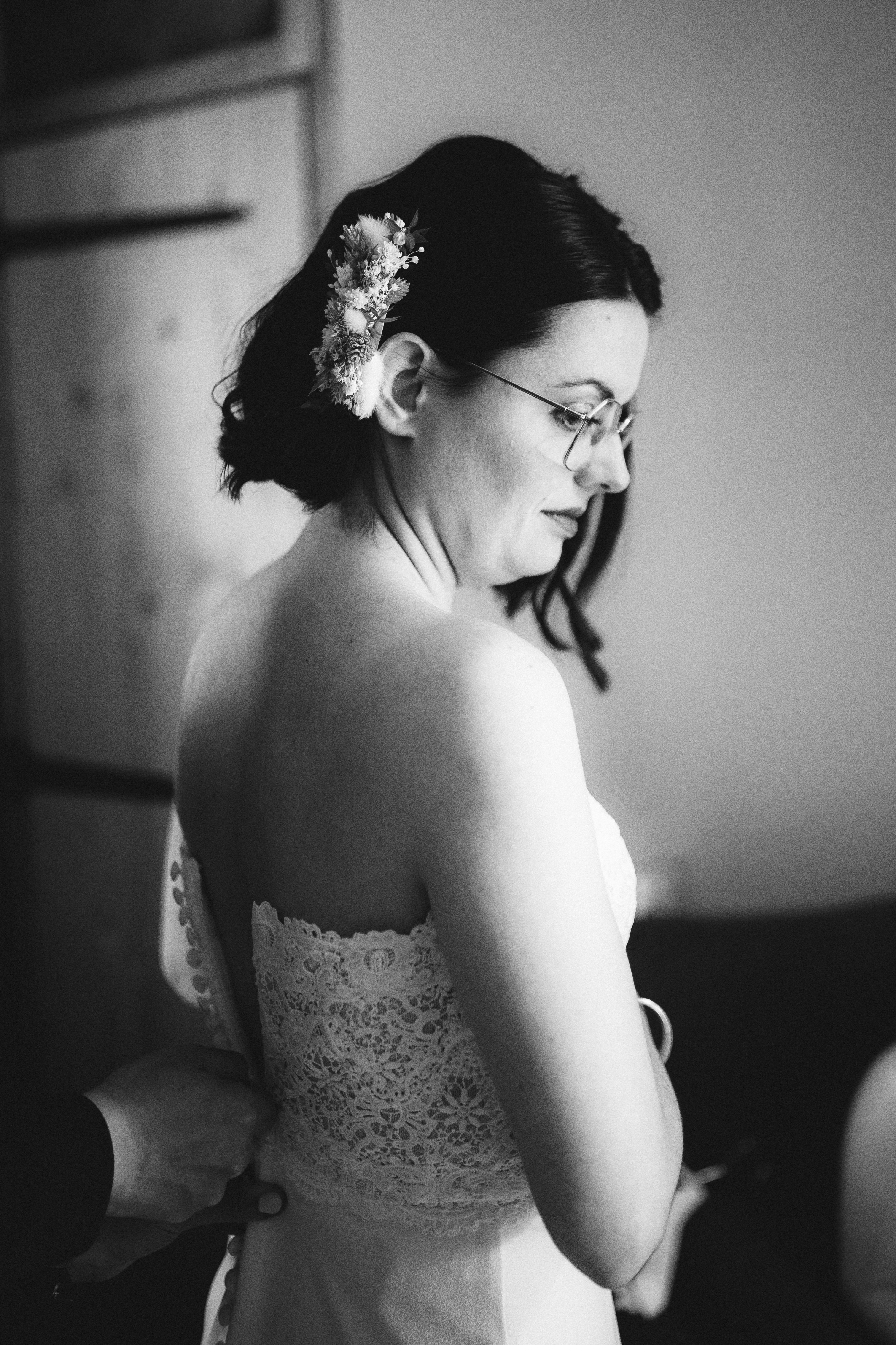 La journée a commencé tranquillement, entre sourires, discussions et petites touches de stress. Les mariés ont pris leur temps, entourés de leurs proches. Une ambiance simple et chaleureuse.