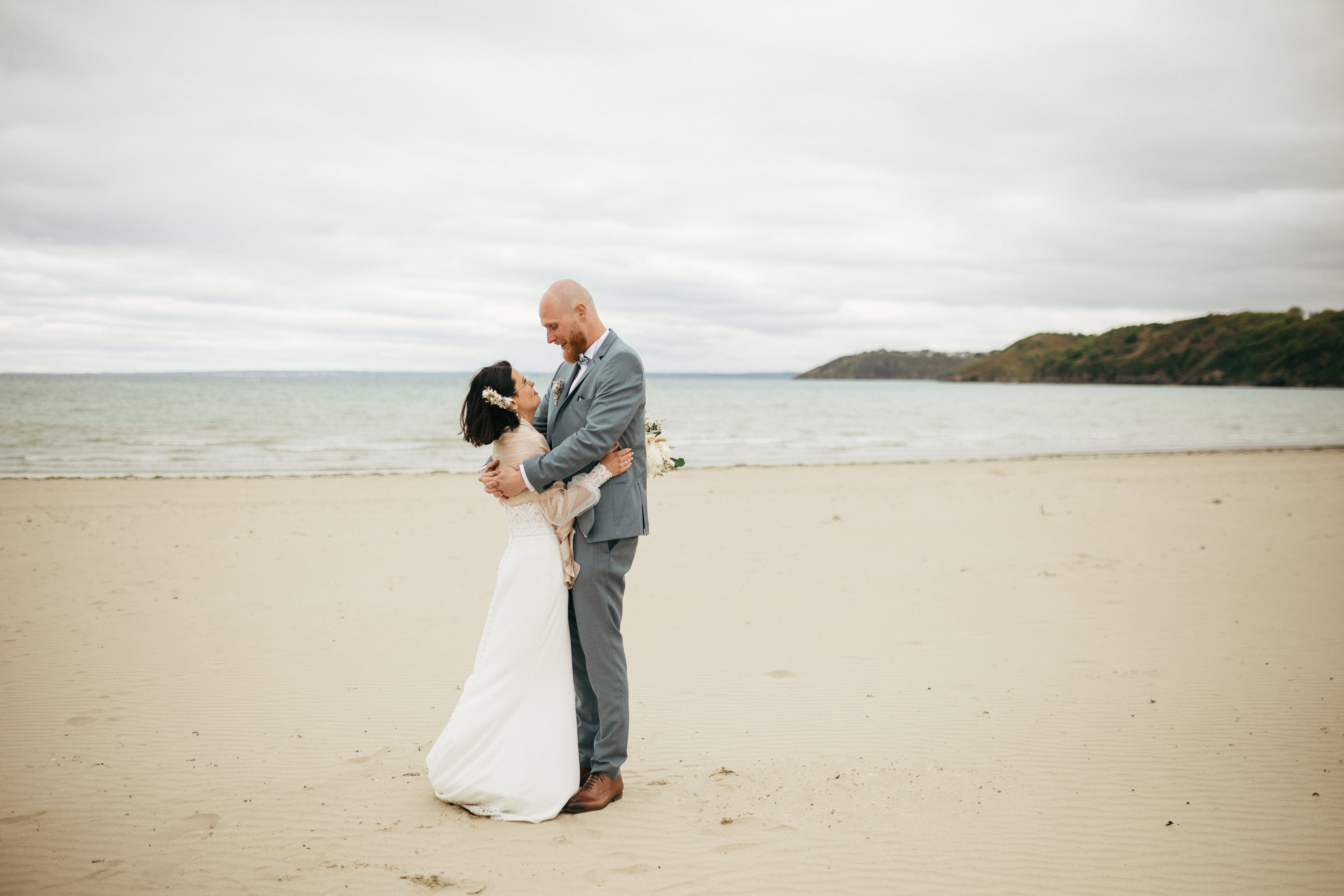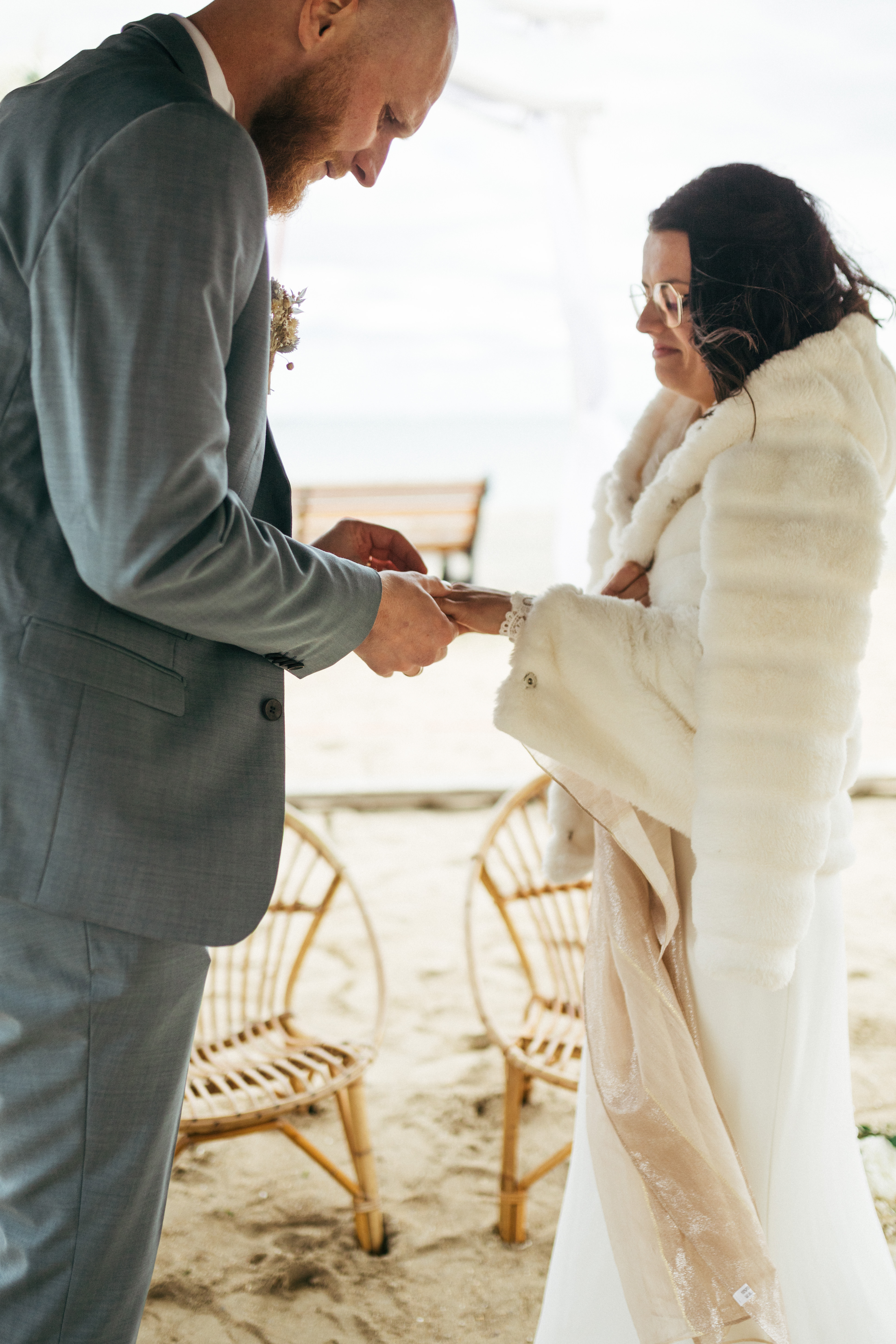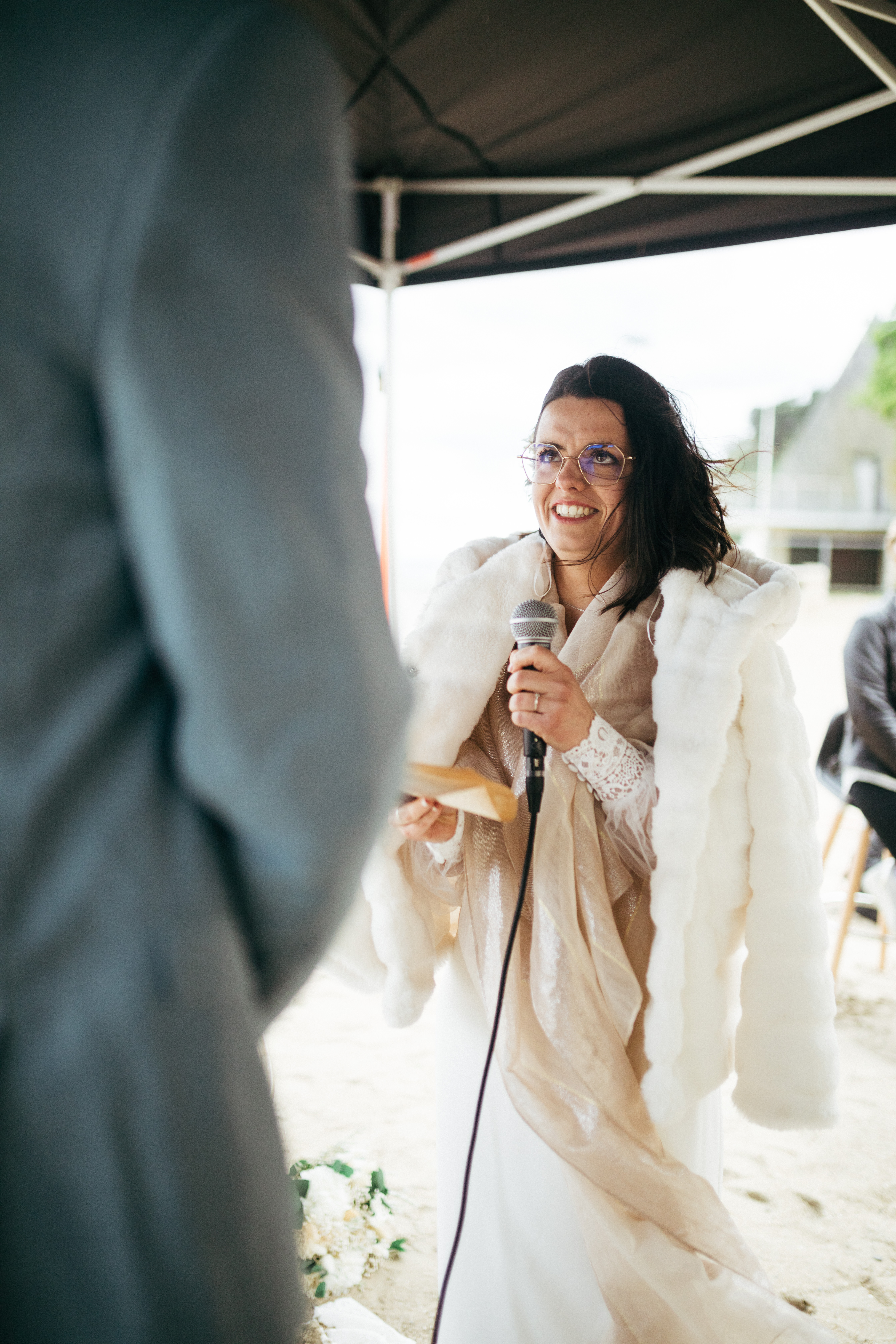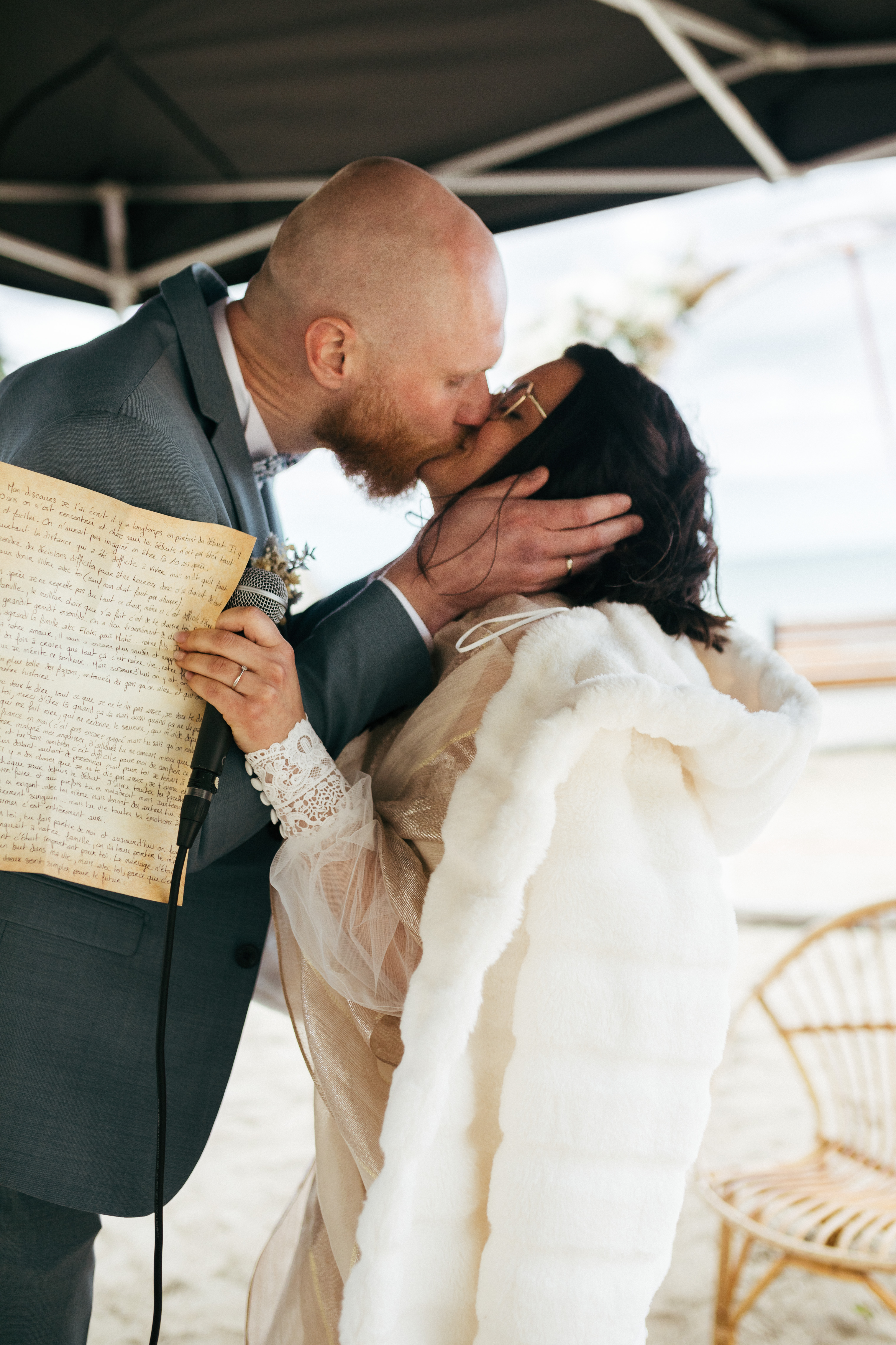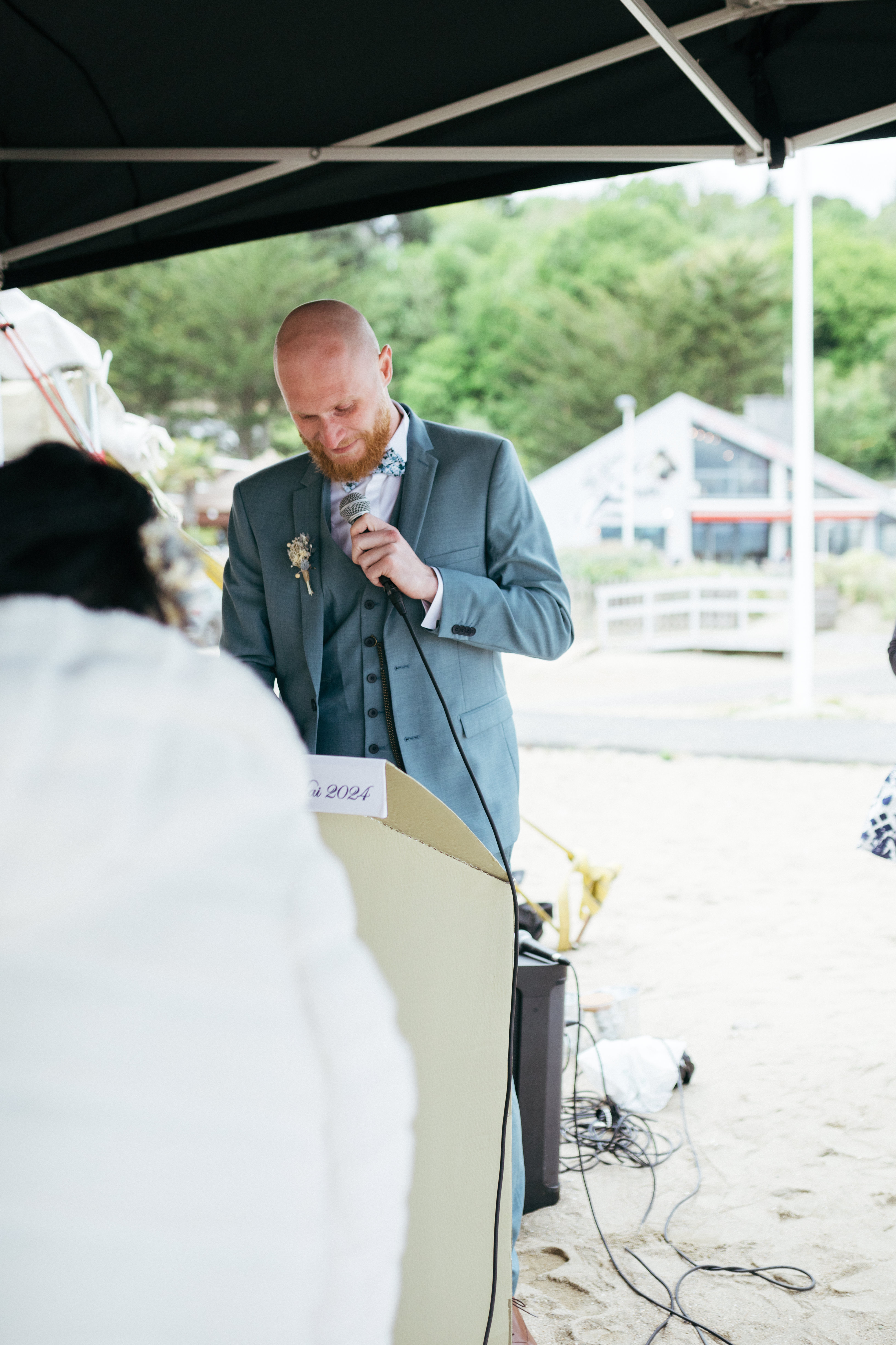 Le frère du marié et la sœur de la mariée ont mené la cérémonie, dans un moment à la fois doux et spontané. Les rires, les échanges et le bruit de la mer ont donné une belle atmosphère.