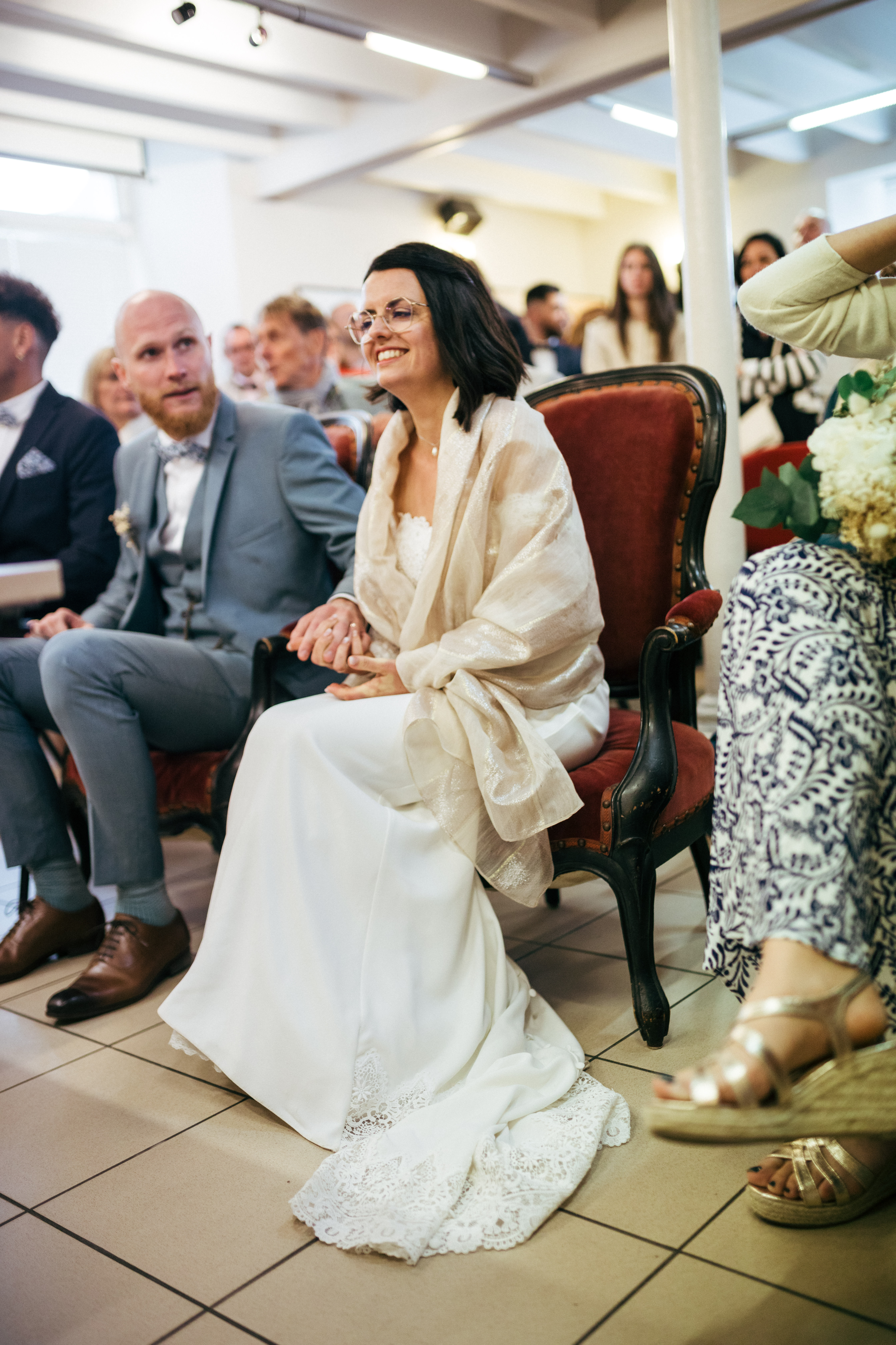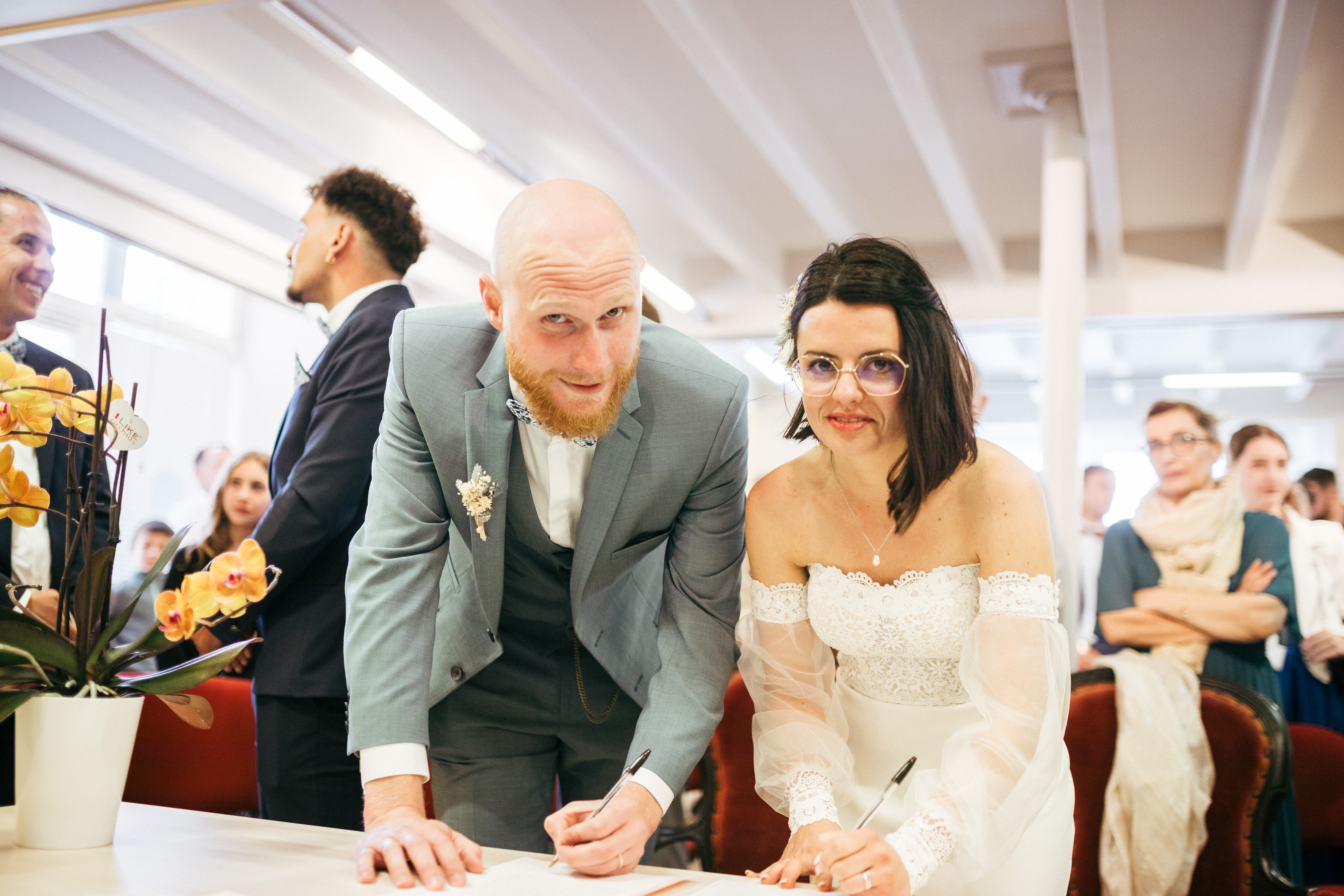 La journée s’est poursuivie à la mairie pour la cérémonie civile. Une étape plus formelle, mais toujours légère et souriante. Les mariés étaient entourés de leurs proches, ce qui a rendu ce moment très apaisé.