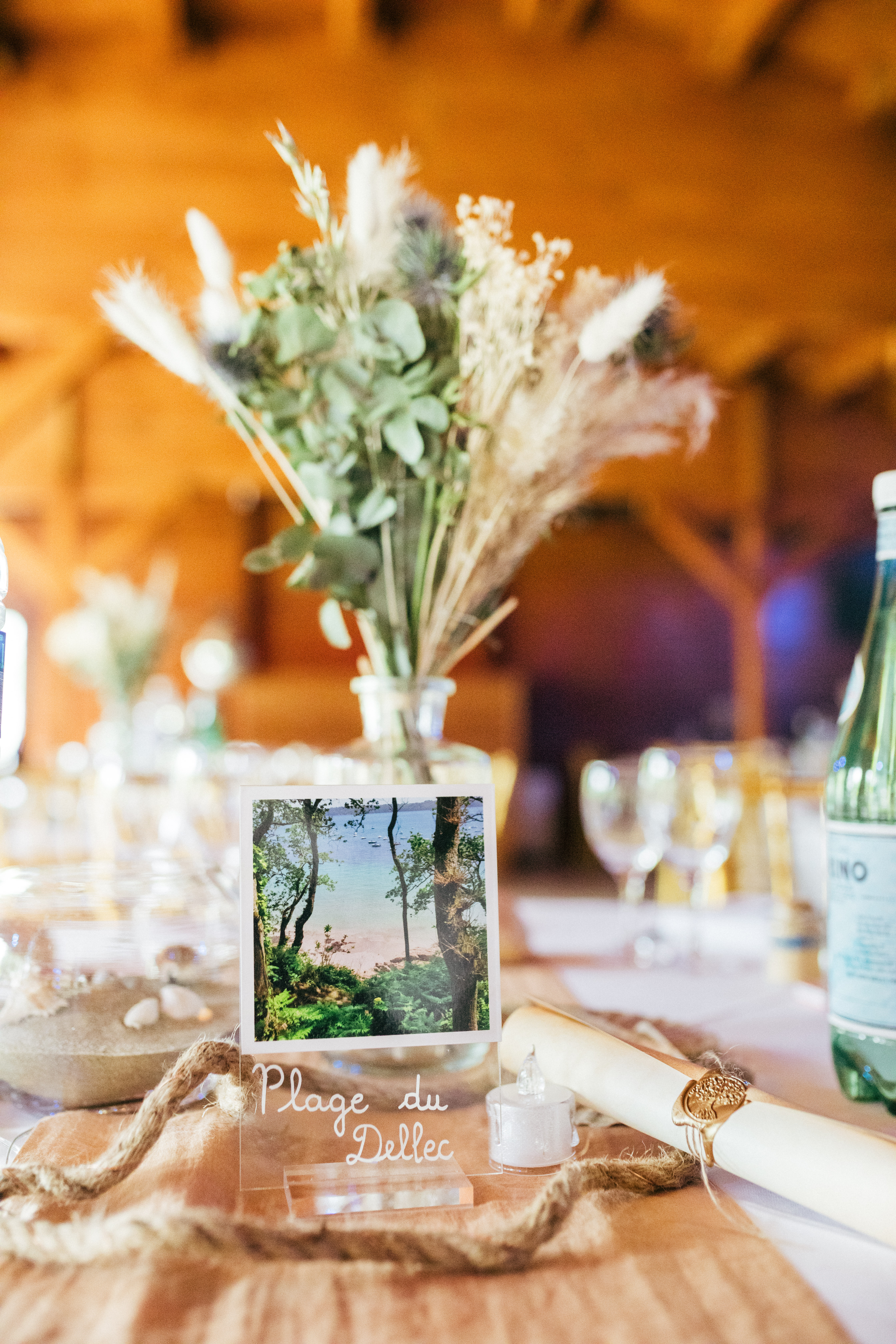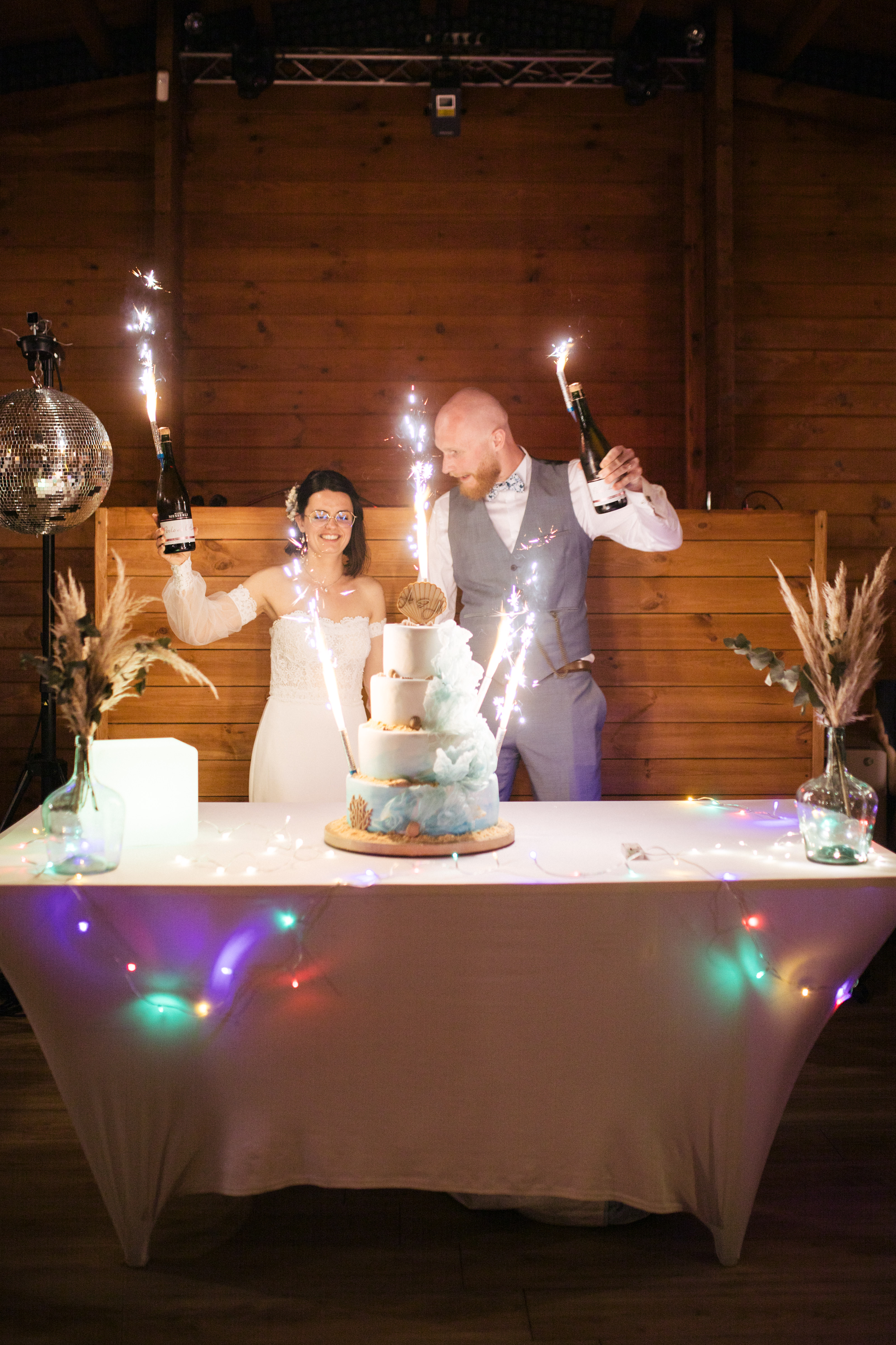 Agnès & Maxence ont imaginé un décor en lien avec la mer, avec des couleurs sobres : blanc, sable, bleu.