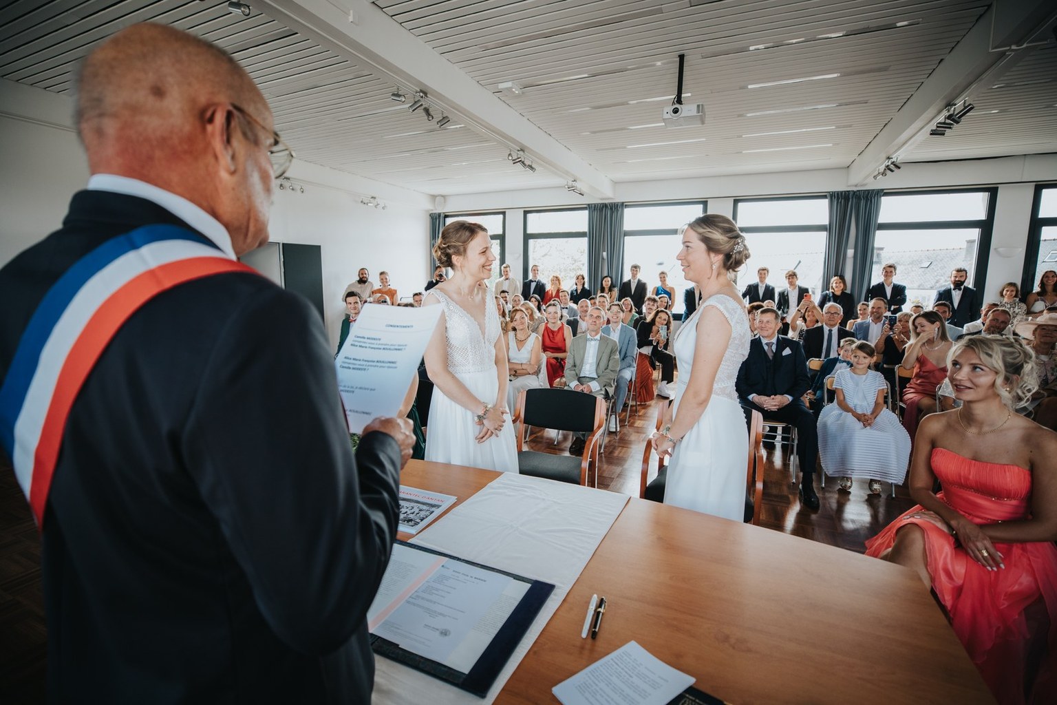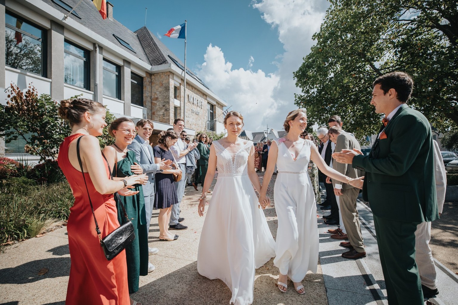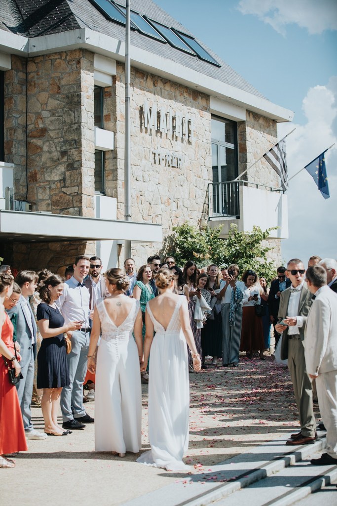 La journée a commencé sous un beau soleil à Carantec. Alice & Camille se sont dit “oui” à la mairie, entourées de leurs proches. Beaucoup de sourires, de douceur, et une ambiance déjà très joyeuse.