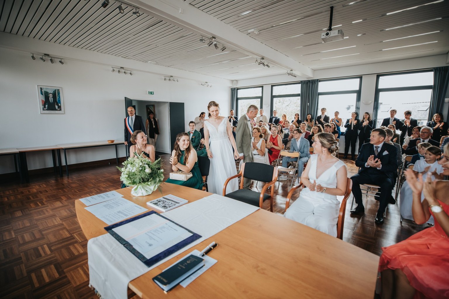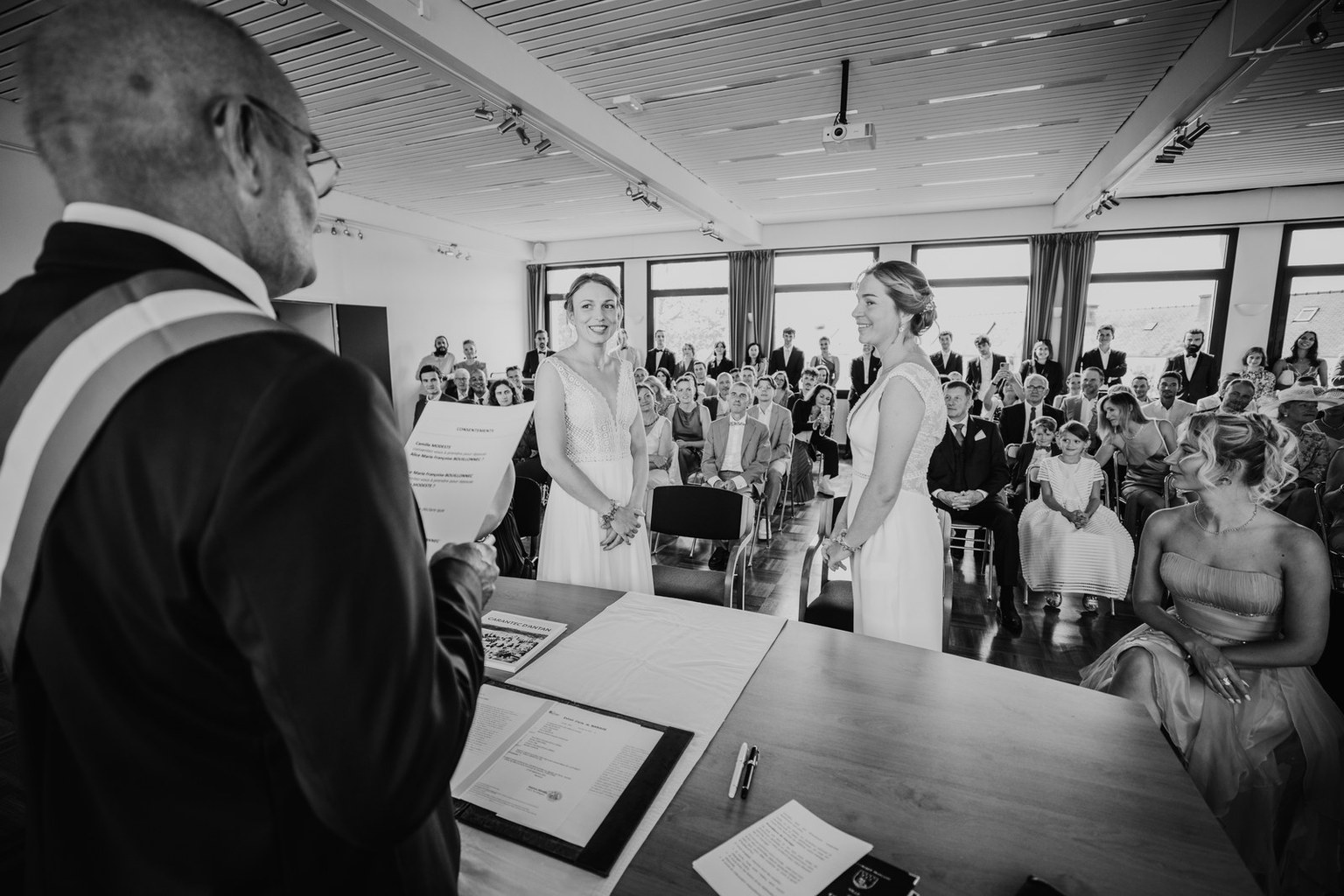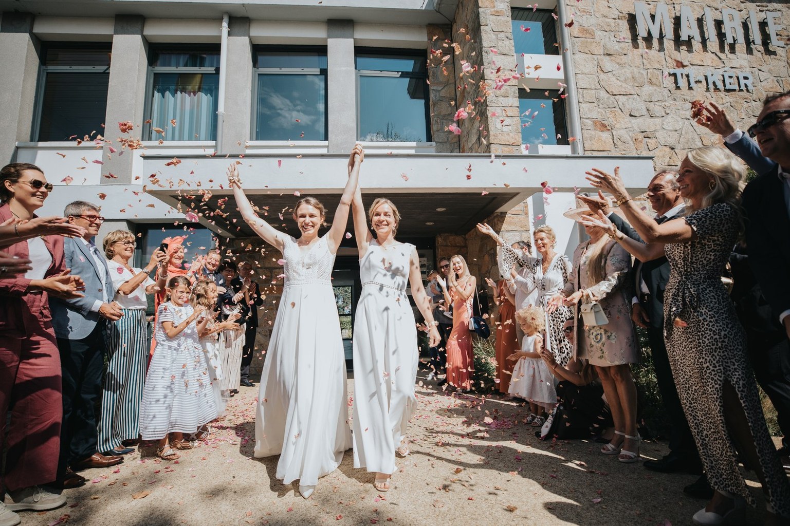 La journée a commencé sous un beau soleil à Carantec. Alice & Camille se sont dit “oui” à la mairie, entourées de leurs proches. Beaucoup de sourires, de douceur, et une ambiance déjà très joyeuse.
