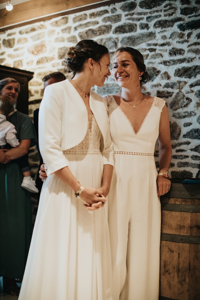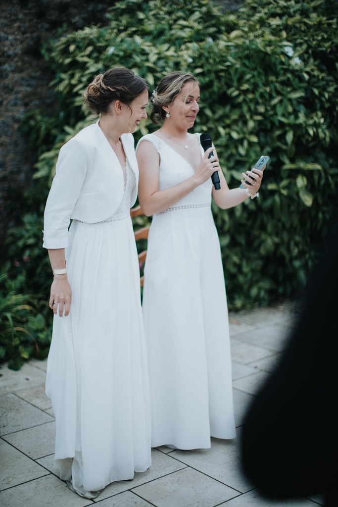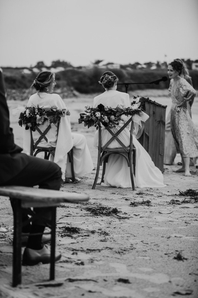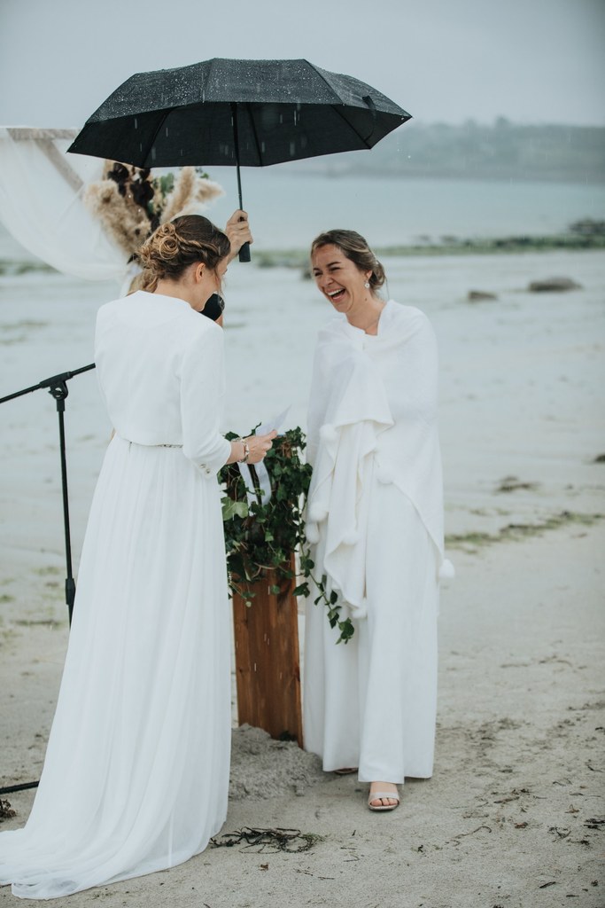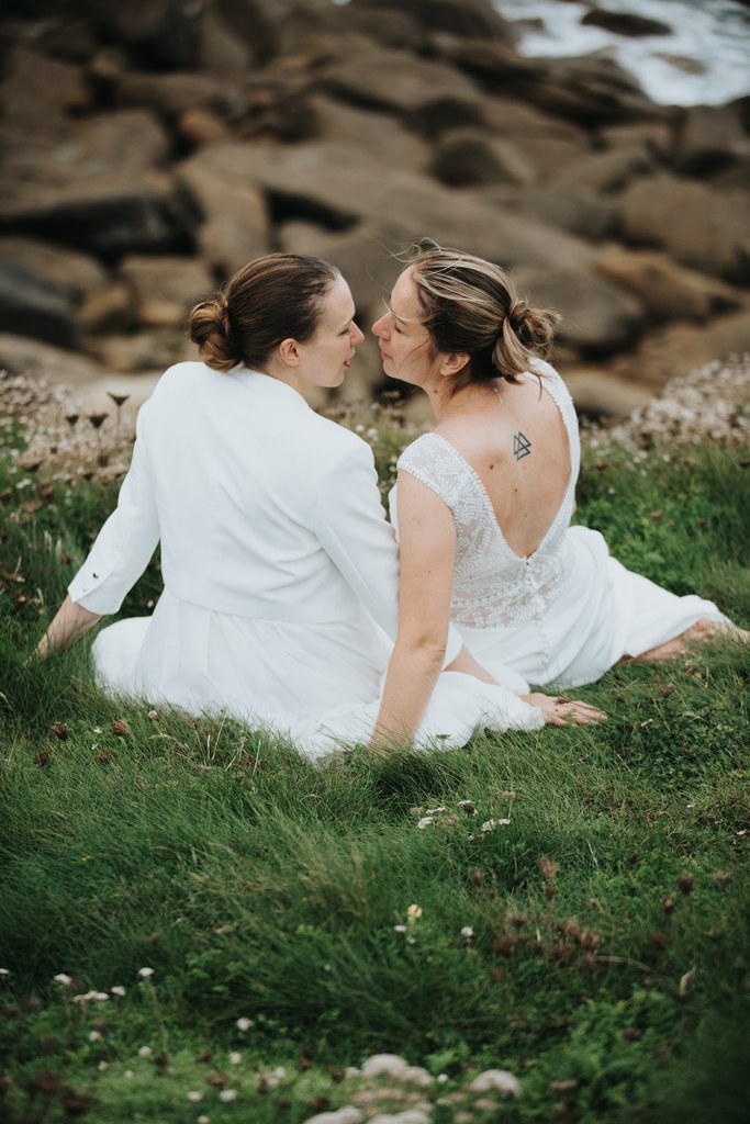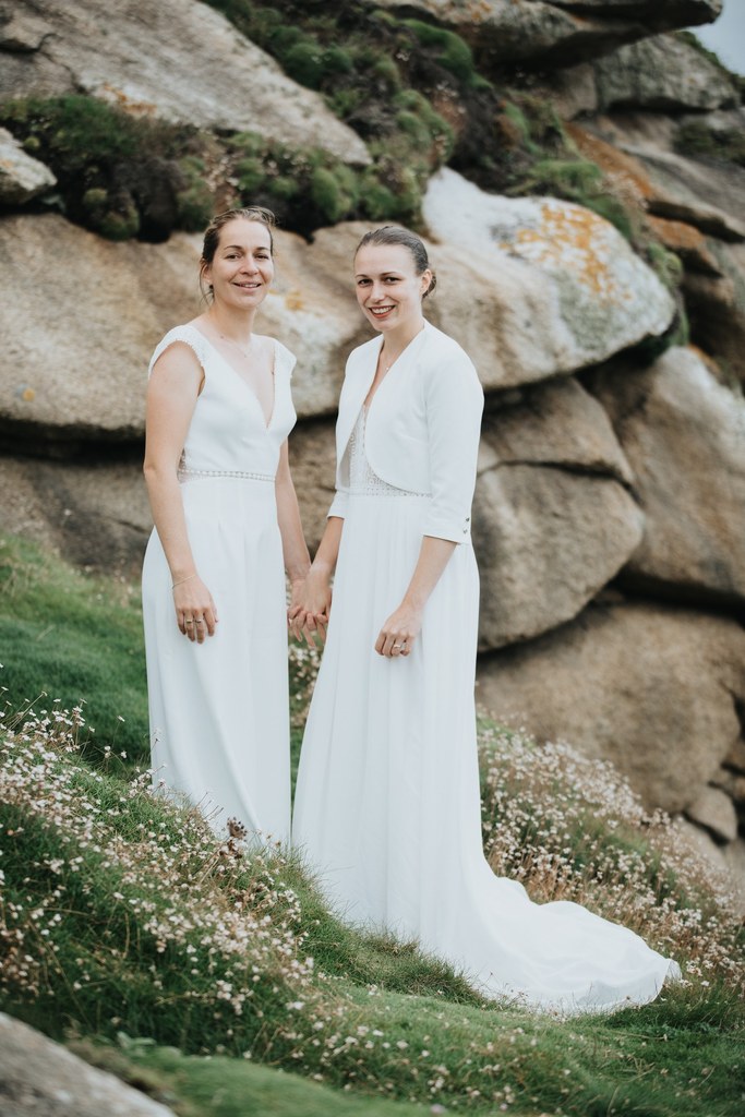 Il y a des mariages qui restent longtemps en mémoire. Celui d’Alice & Camille, en septembre 2024, en fait partie. Deux mariées pleines d’énergie, un décor entre terre et mer… et une météo typiquement bretonne, généreuse en surprises.