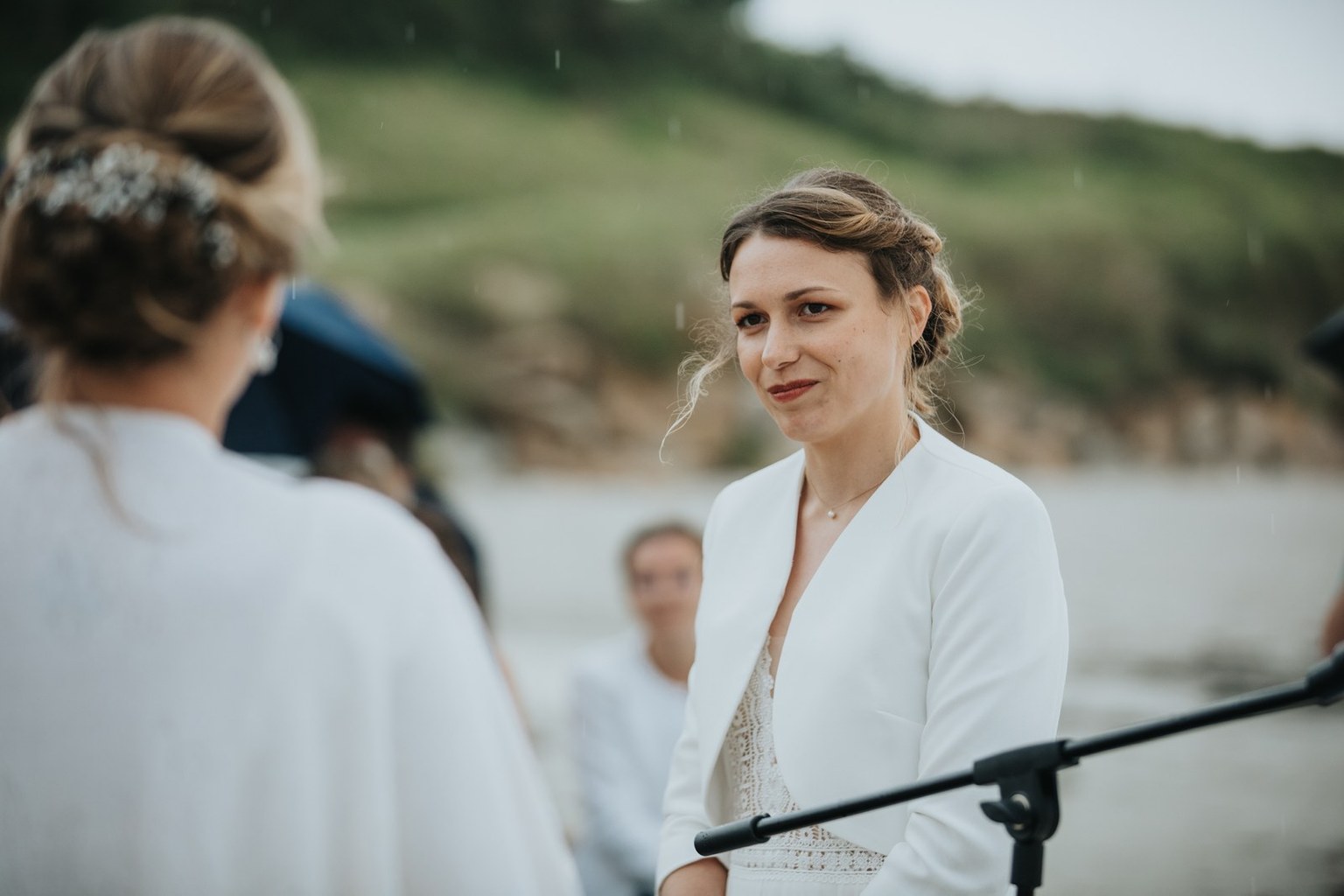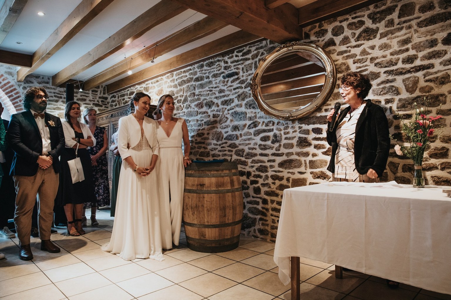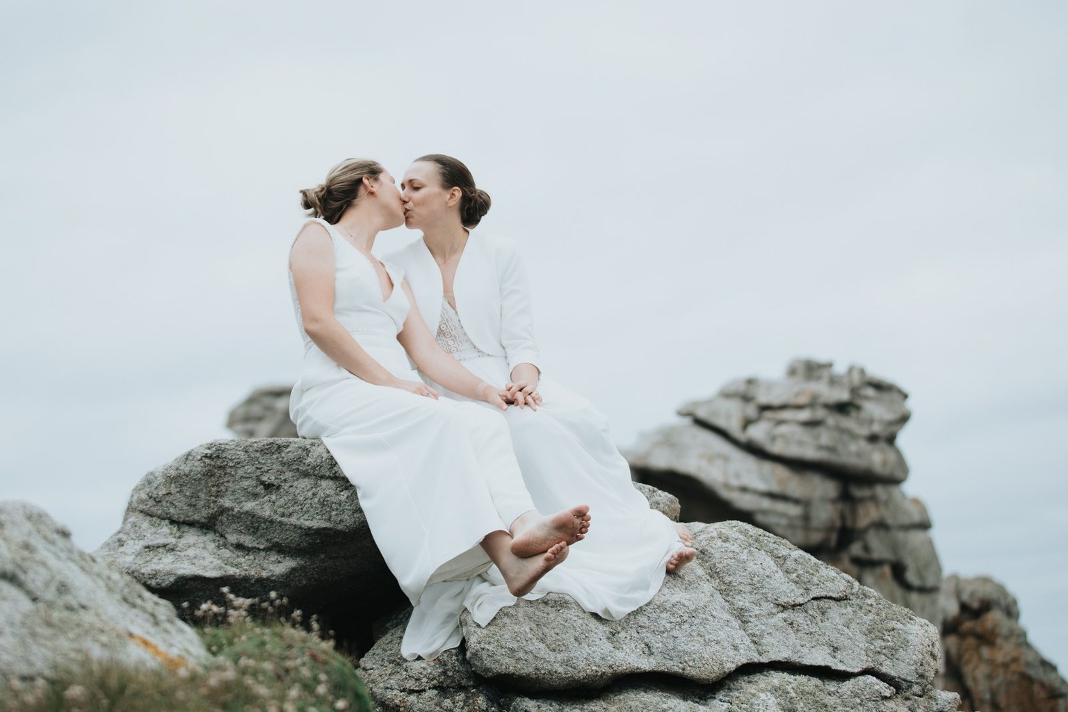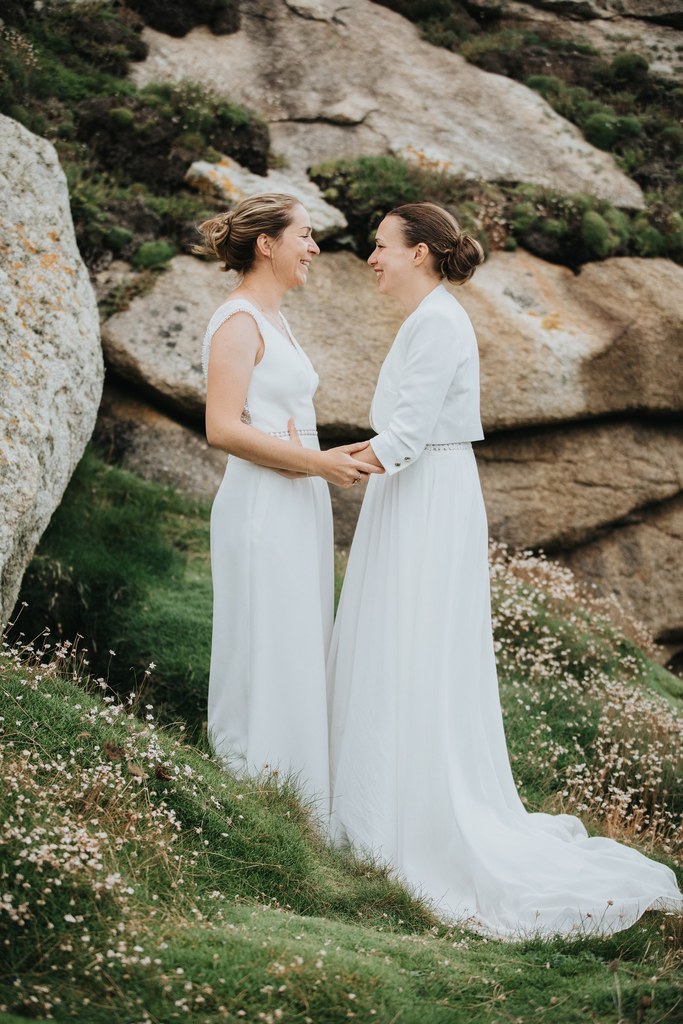 Il y a des mariages qui restent longtemps en mémoire. Celui d’Alice & Camille, en septembre 2024, en fait partie. Deux mariées pleines d’énergie, un décor entre terre et mer… et une météo typiquement bretonne, généreuse en surprises.
