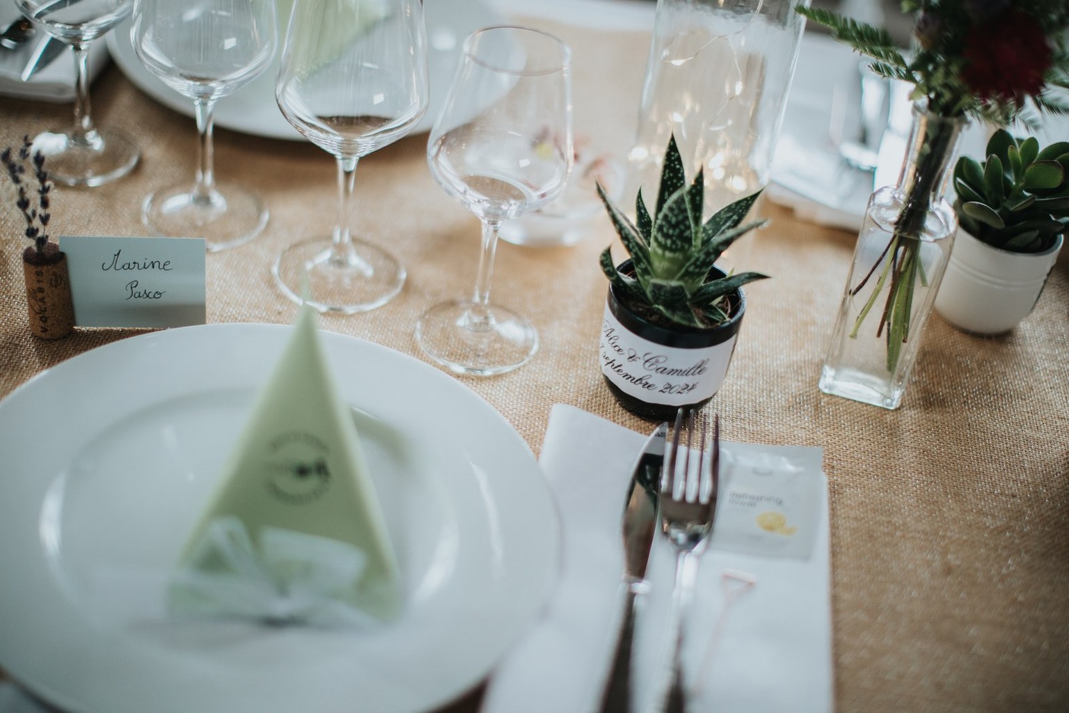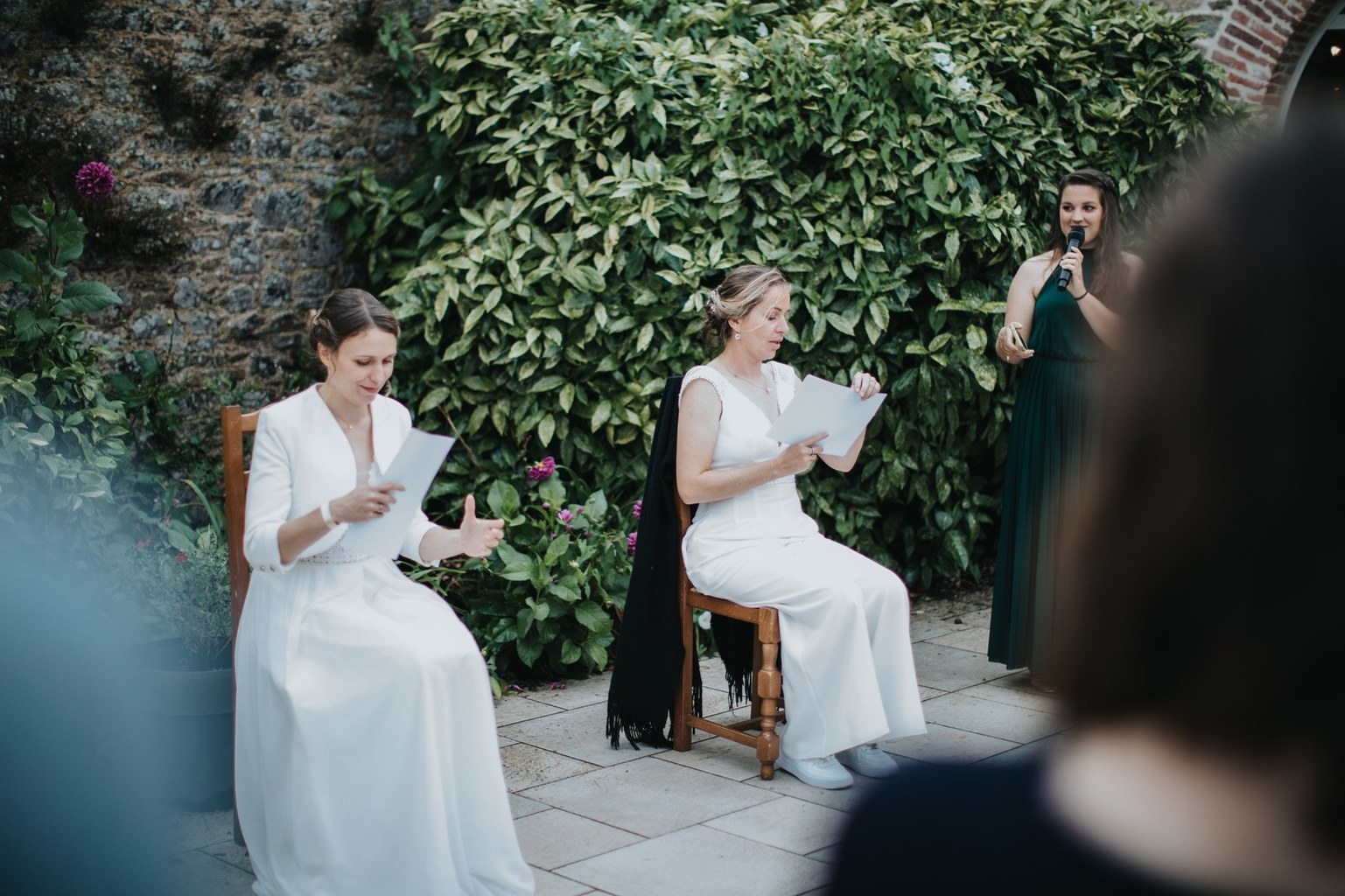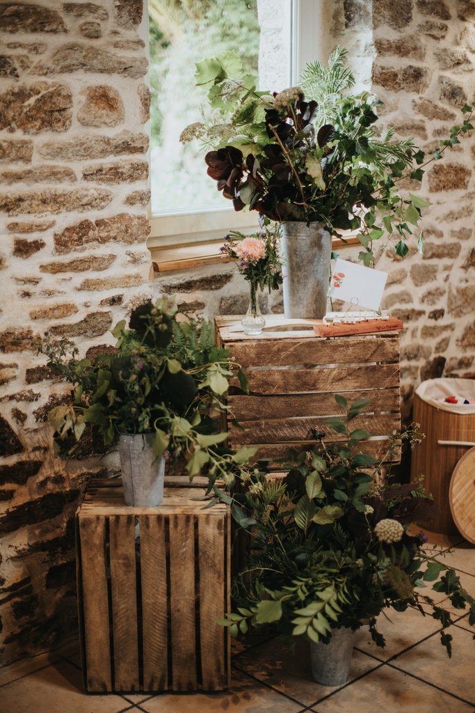 Une amie – également témoin – a réalisé les compositions florales avec des fleurs de la Ferme de Lescinquit. Une décoration pensée avec intention, en accord avec leurs valeurs.