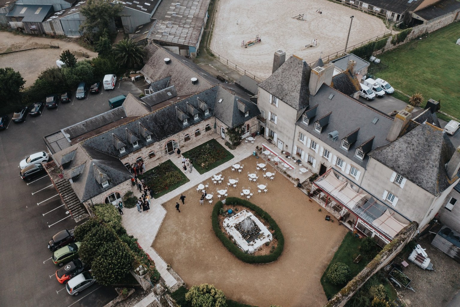 Interruption d’urgence et repli au Manoir de Trouzilit, pendant que, avec Célia d’Atelier Nova, nous démontions la cérémonie sous la pluie. Une vraie équipe bretonne, motivée malgré les éléments.