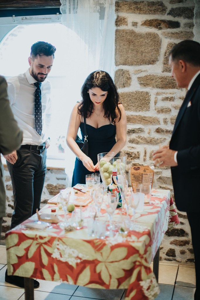 Pour le vin d’honneur, le soleil est revenu. Les invités ont profité du cadre, des discours et des jeux préparés par les témoins. Beaucoup de rires, de moments spontanés, et une atmosphère simple et conviviale.