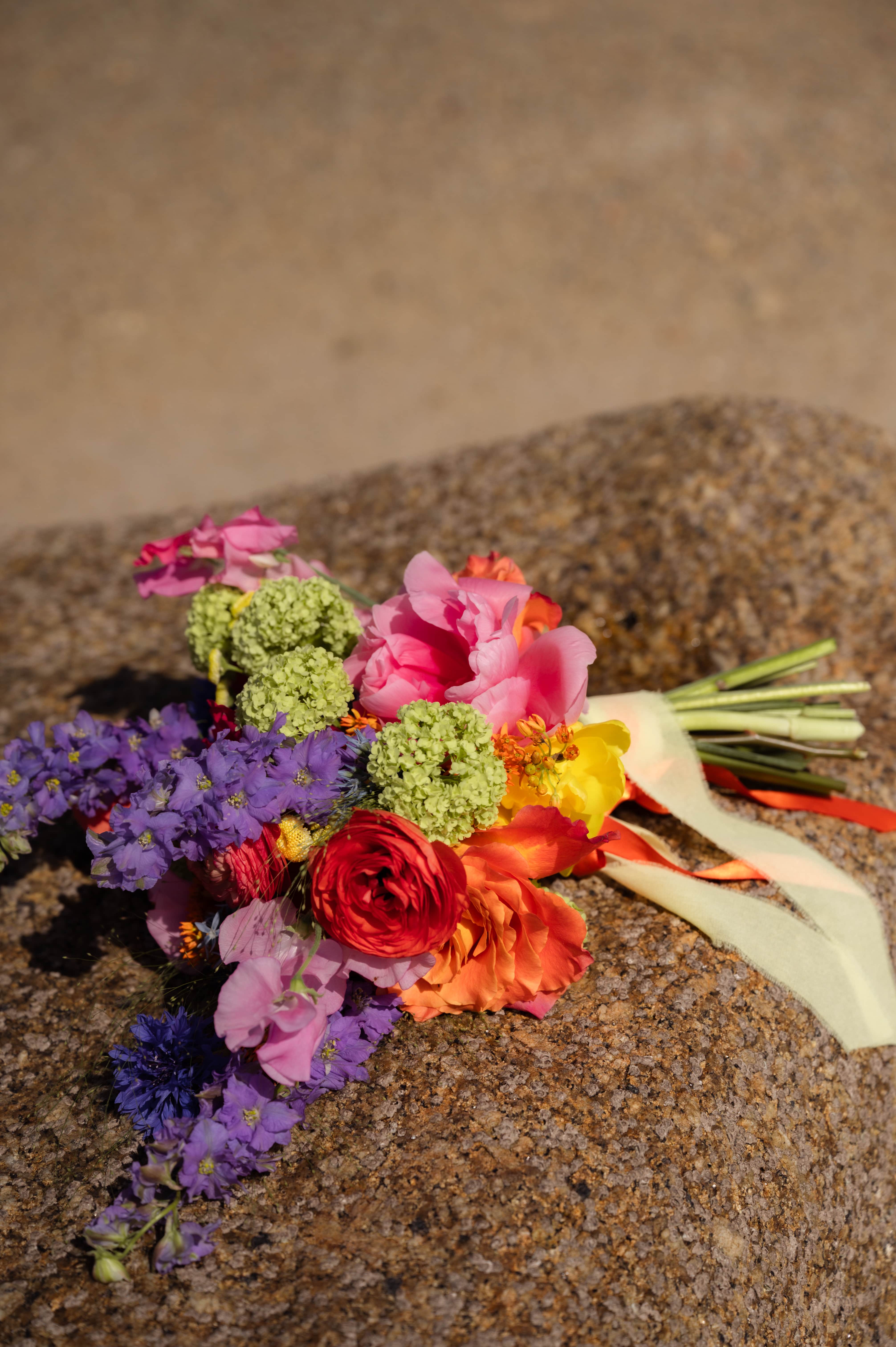Des fleurs pleines de vie qui insufflent énergie et joie — parfaites pour un élopement frais, moderne et audacieux.