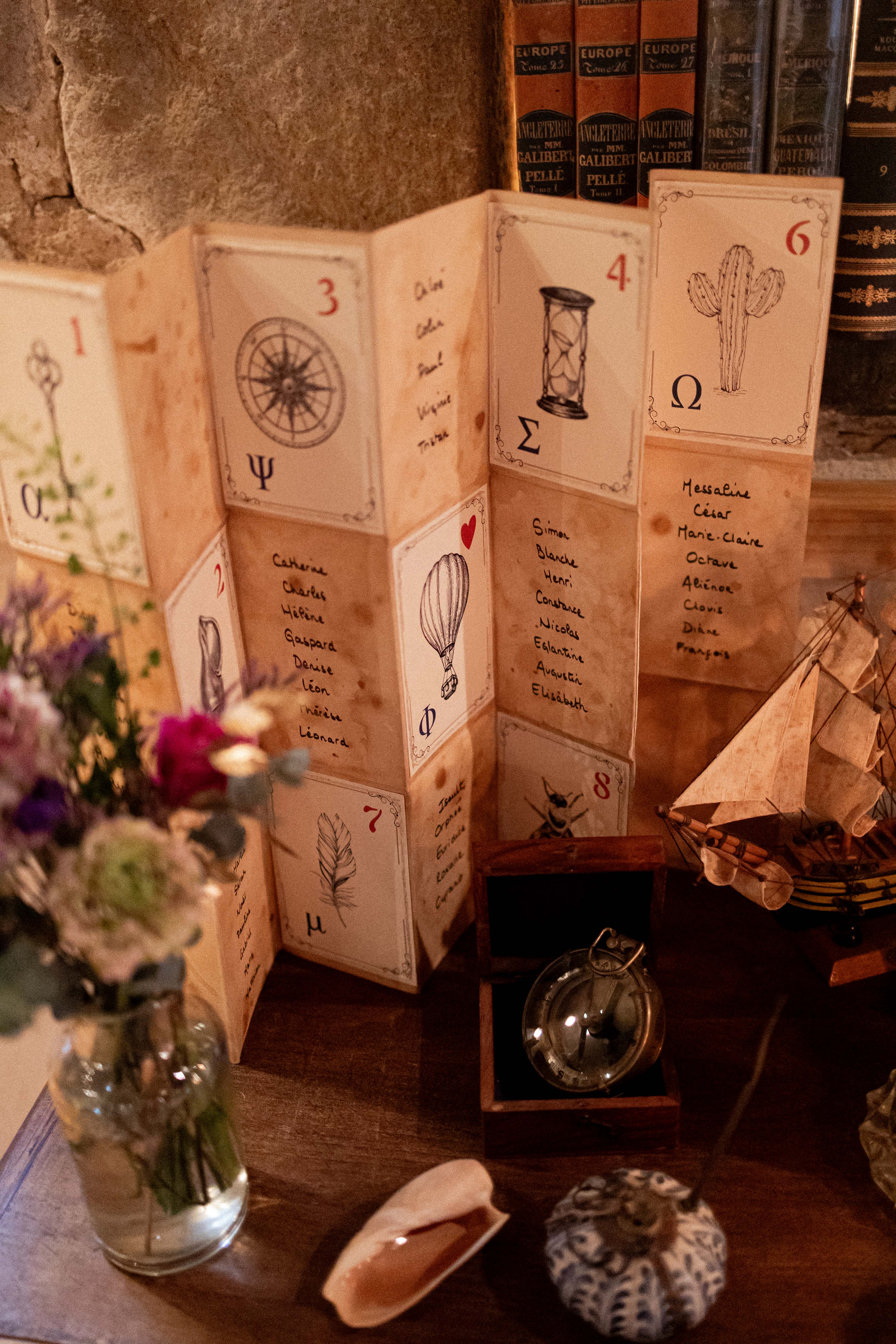 - Plan de table sous forme de carte d’explorateur, vieilli et brodé à la main